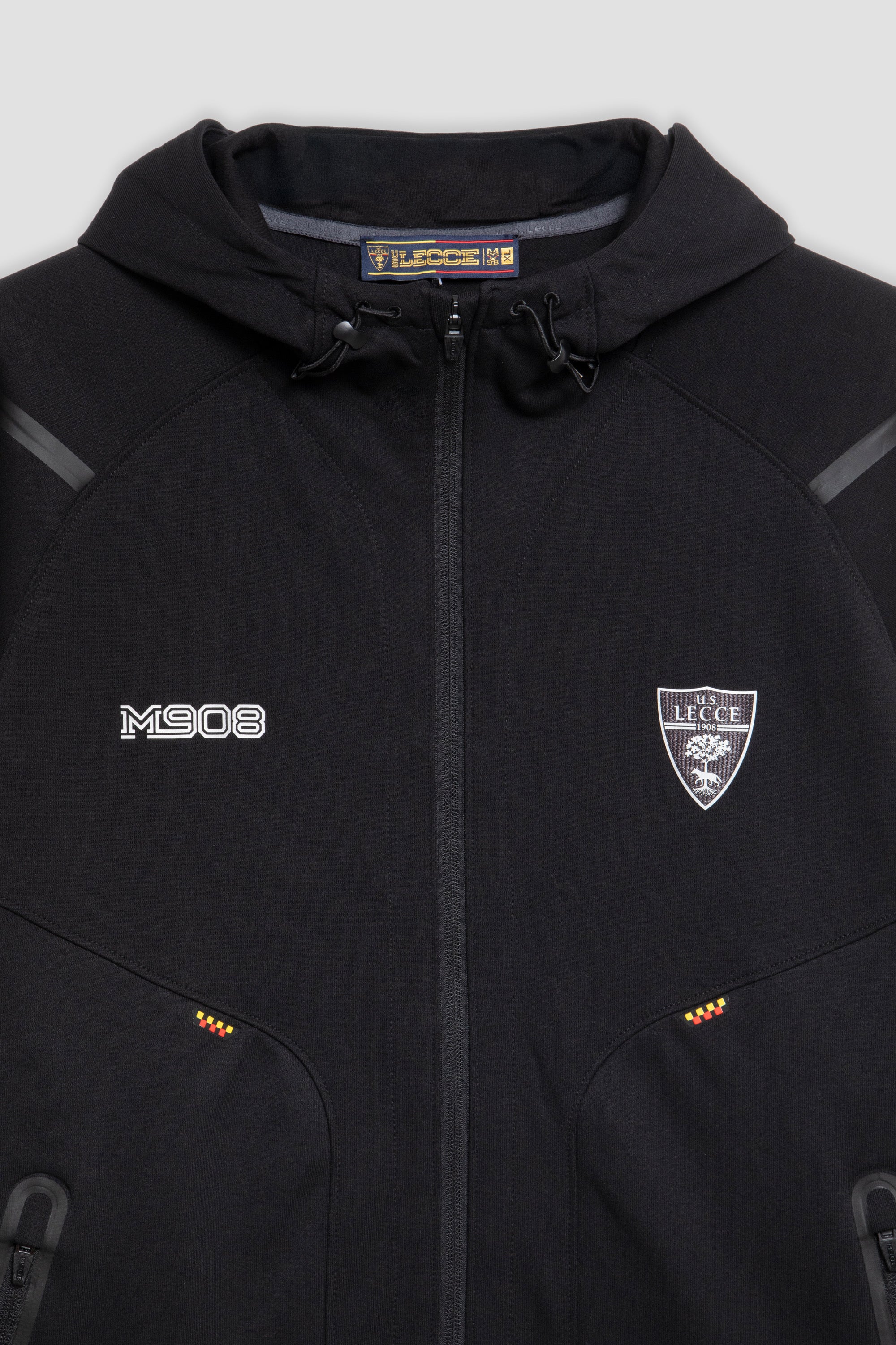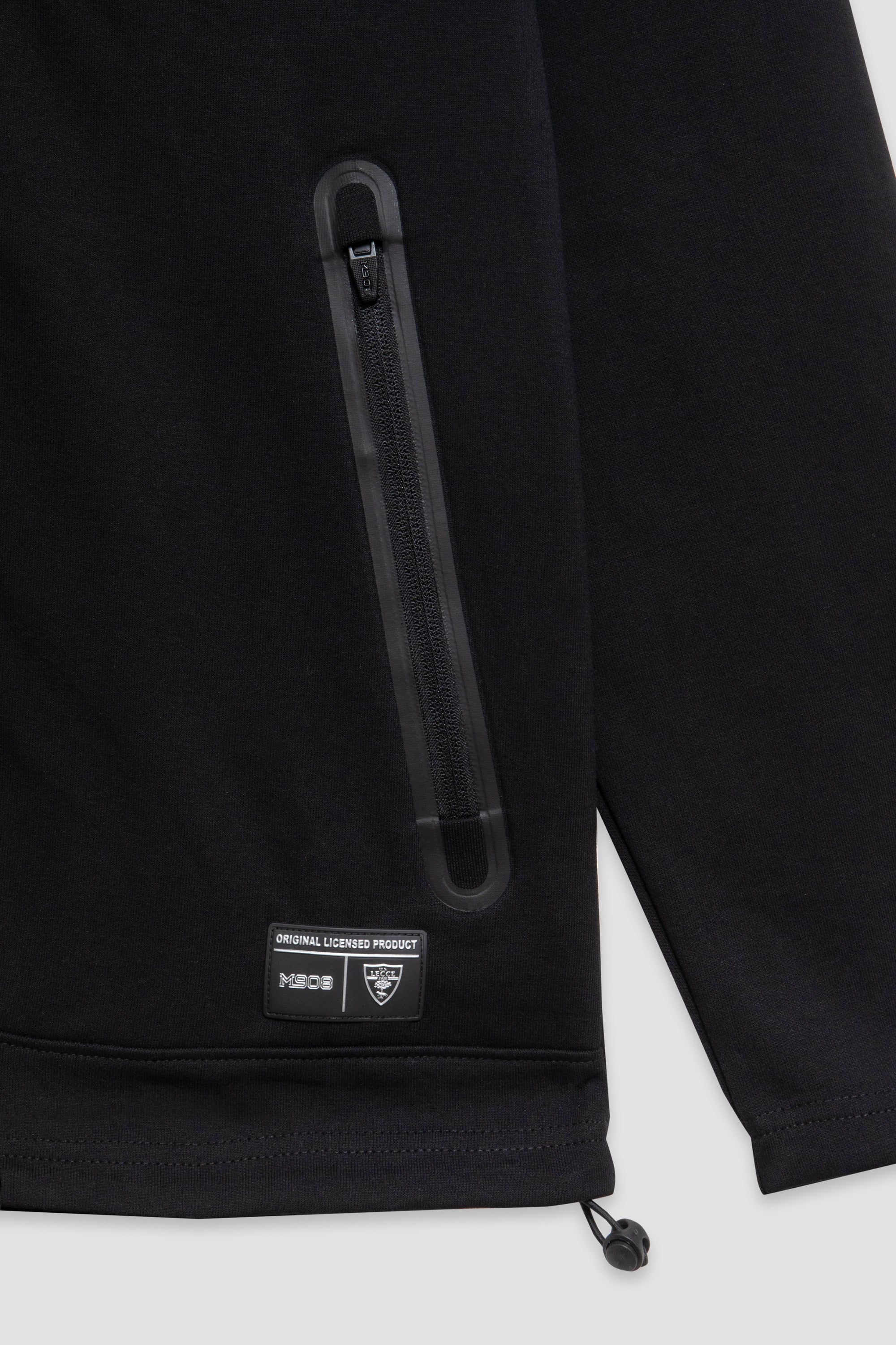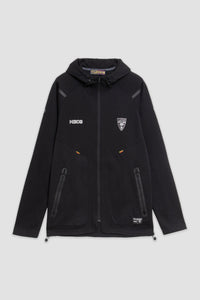 A black club hoodie offering a structured and comfortable fit. This model features a full-zip front, an adjustable hood and hem, and front zip pockets for maximum practicality.