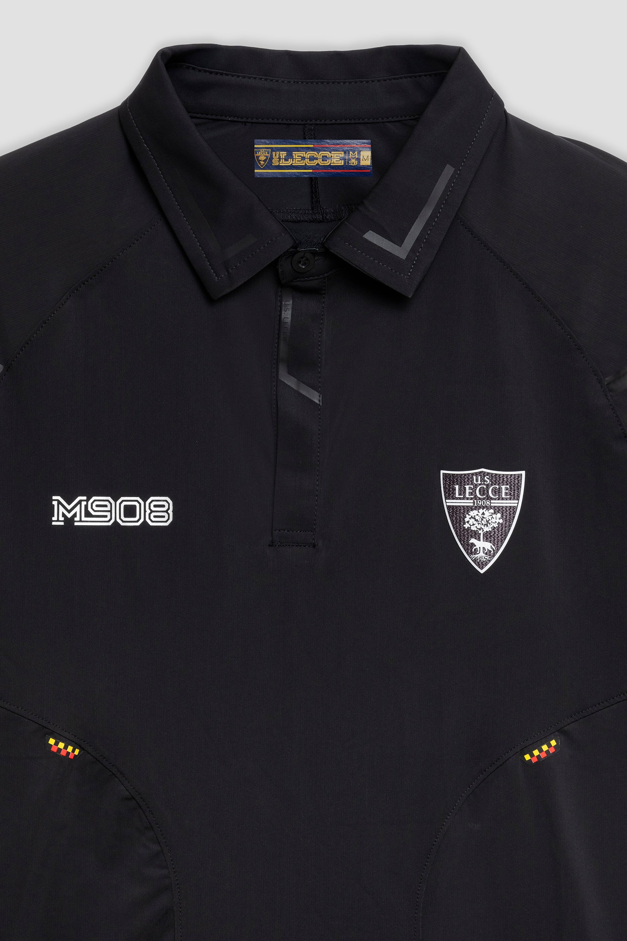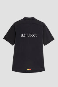 The classic collar features a geometric pattern with a glossy effect, while small yellow-red details, the U.S. Lecce crest, and the M908 logo define the front. The large U.S. LECCE lettering on the back adds a further distinctive element.