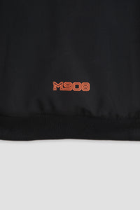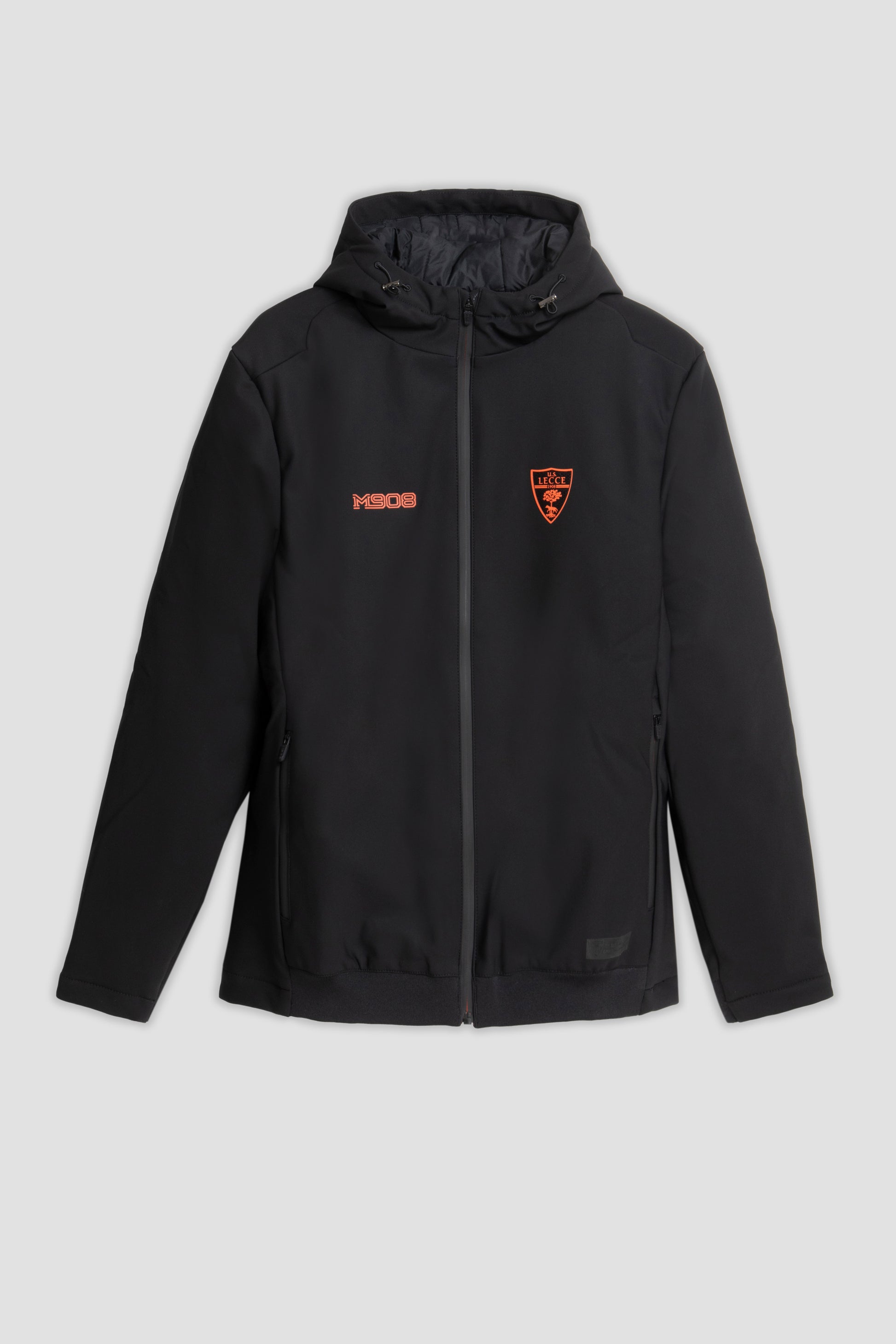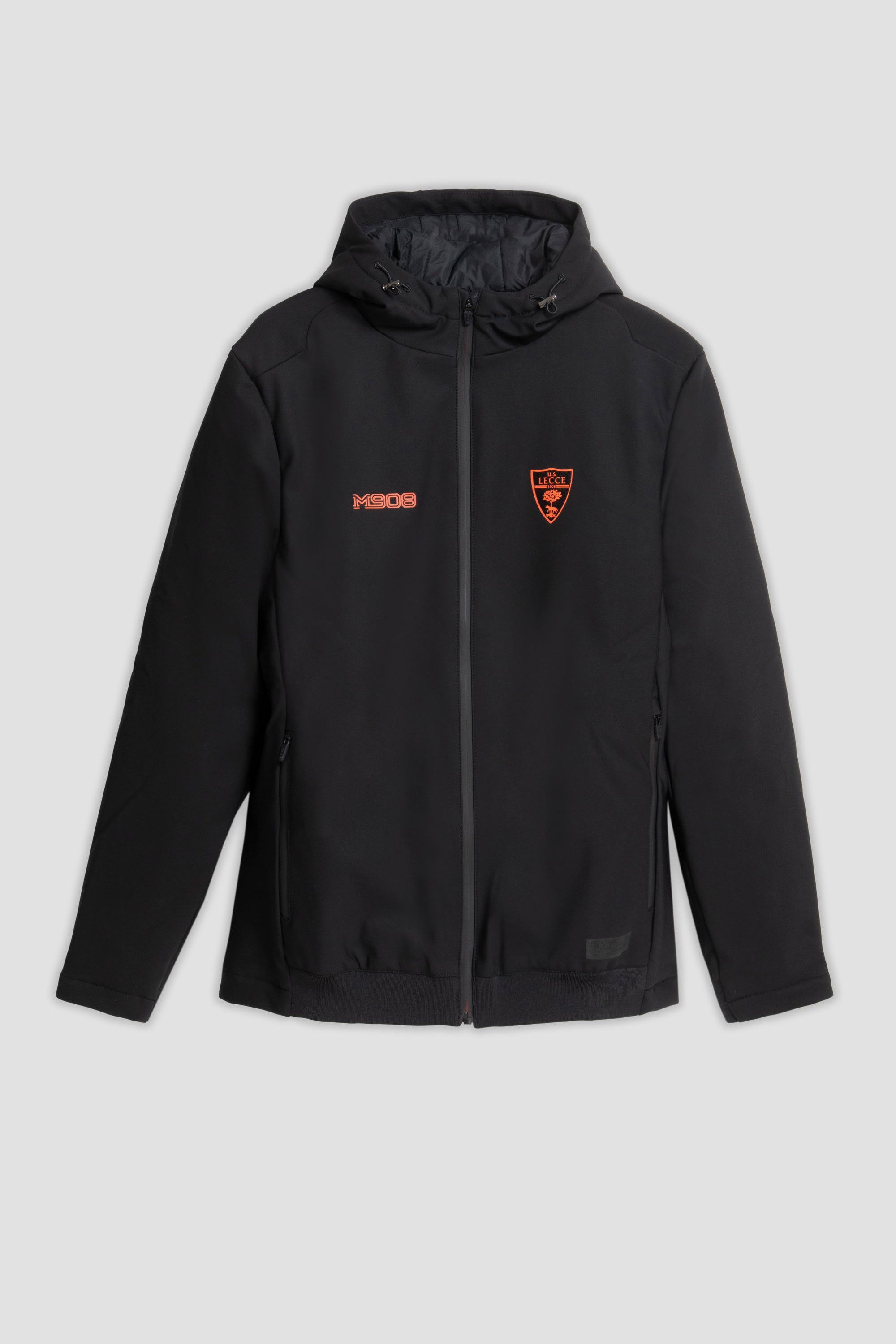 Giacca nera con cappuccio regolabile e zip impermeabile, pensata per offrire comfort e protezione in ogni condizione. Il capo è arricchito da stemma U.S. Lecce sul petto e logo M908 su petto e retro, in colore rosso a contrasto.