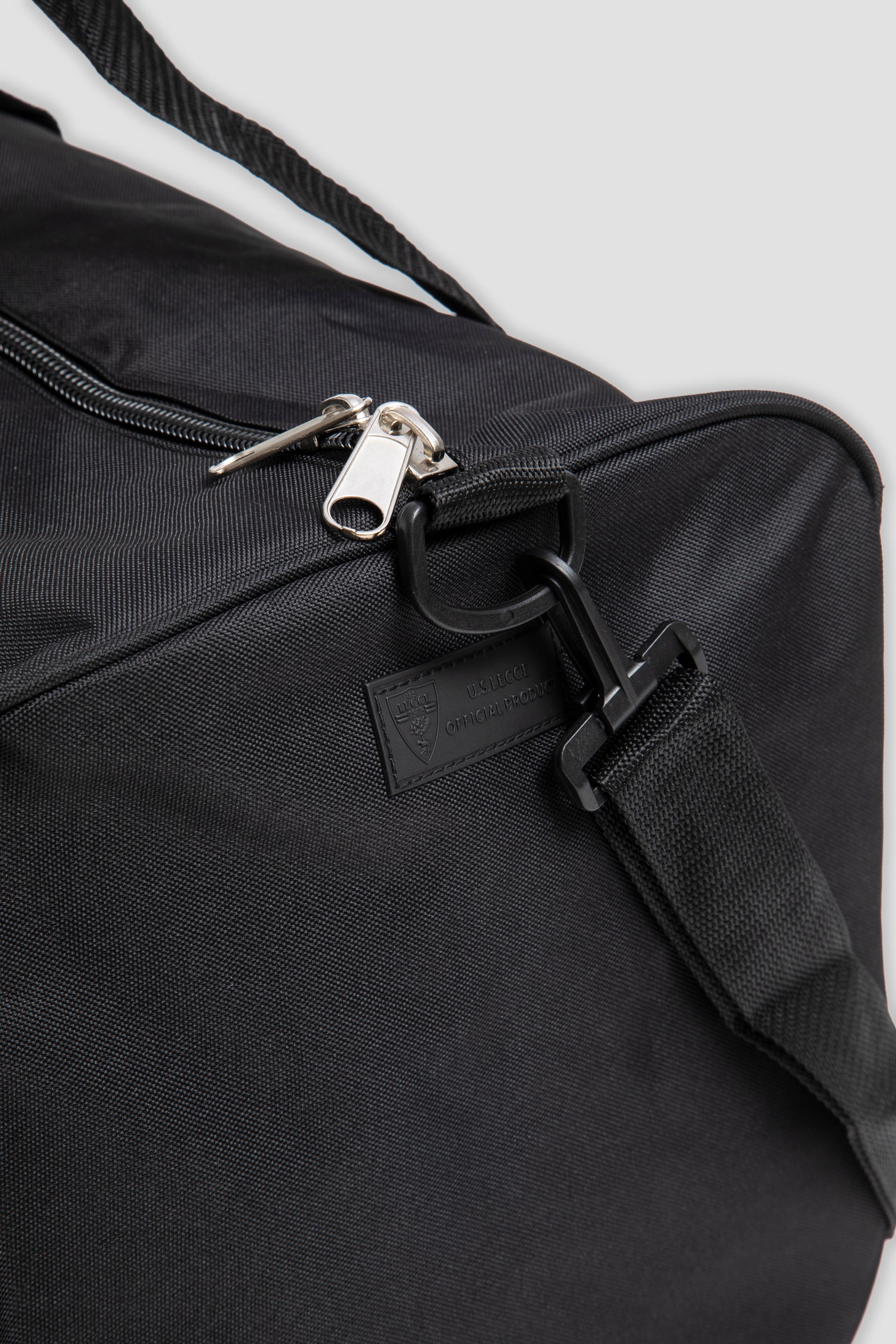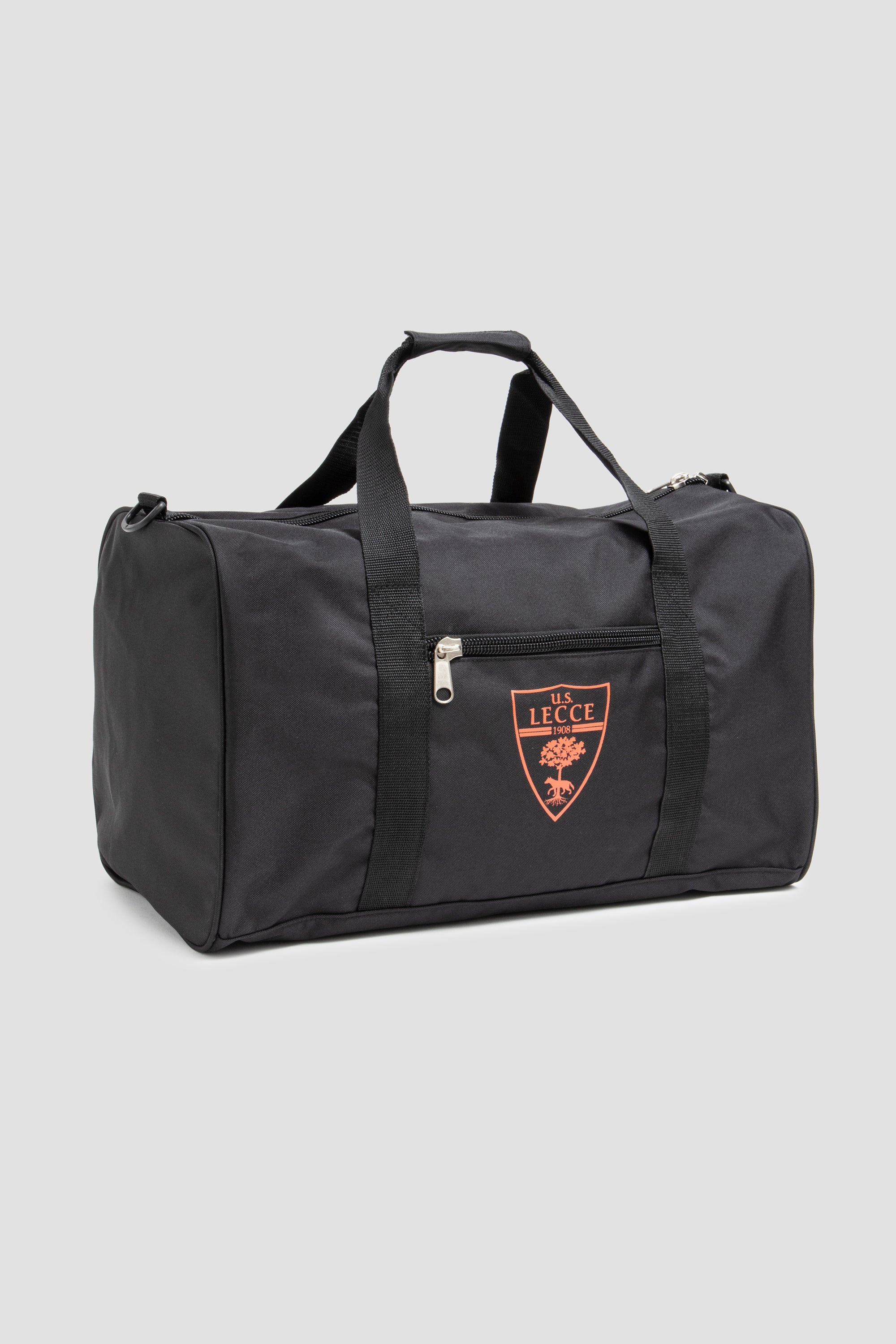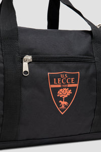 Un borsone sportivo dal design pulito e versatile, con un vano centrale capiente e una comoda tasca frontale con chiusura a zip per riporre gli oggetti essenziali. La tasca esterna è arricchita dallo stemma U.S. Lecce ricamato in rosso a contrasto.