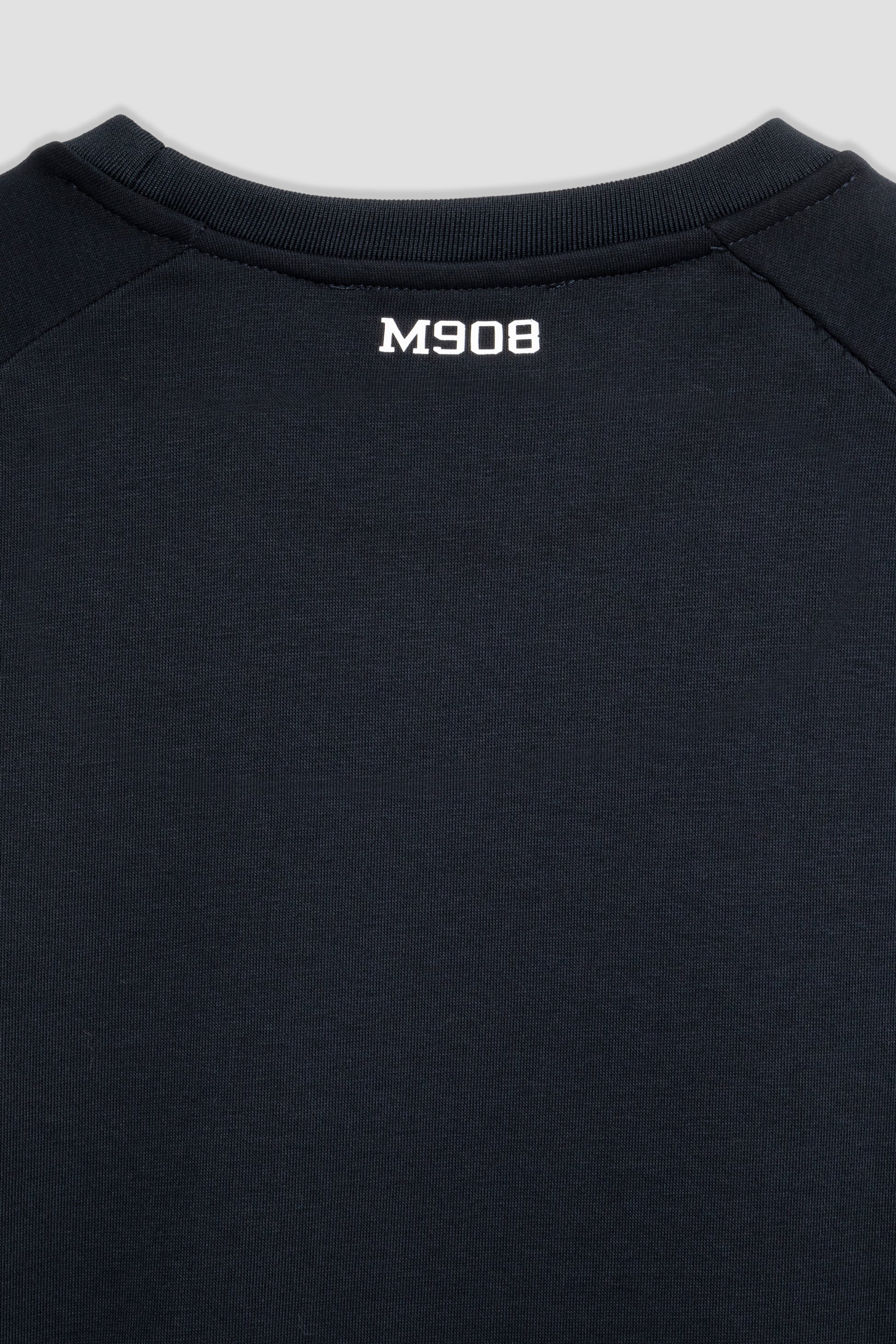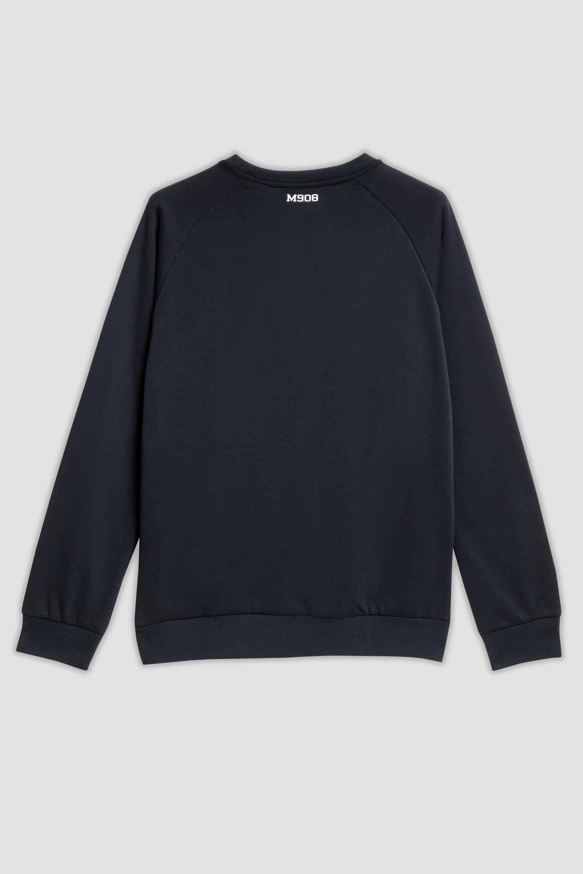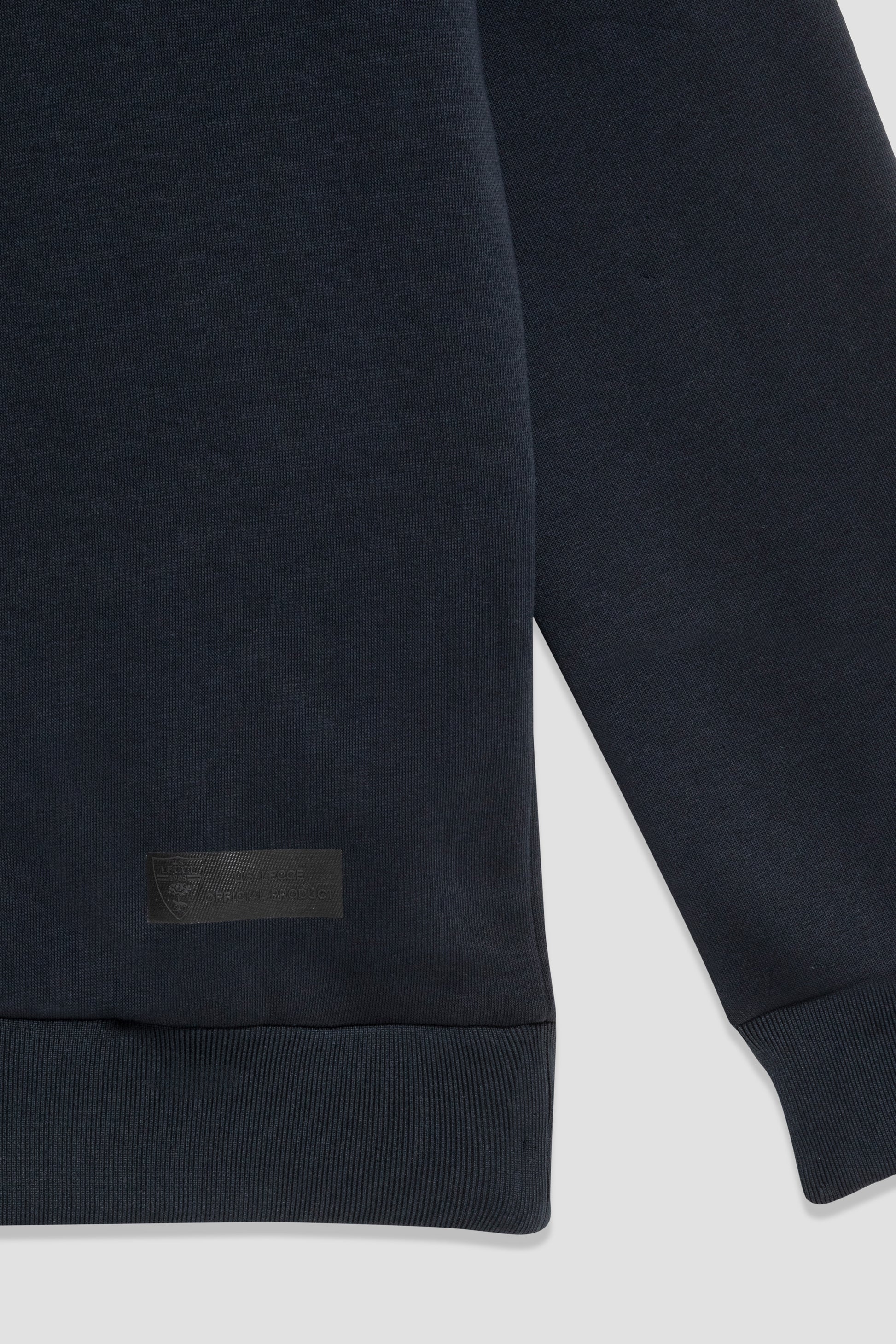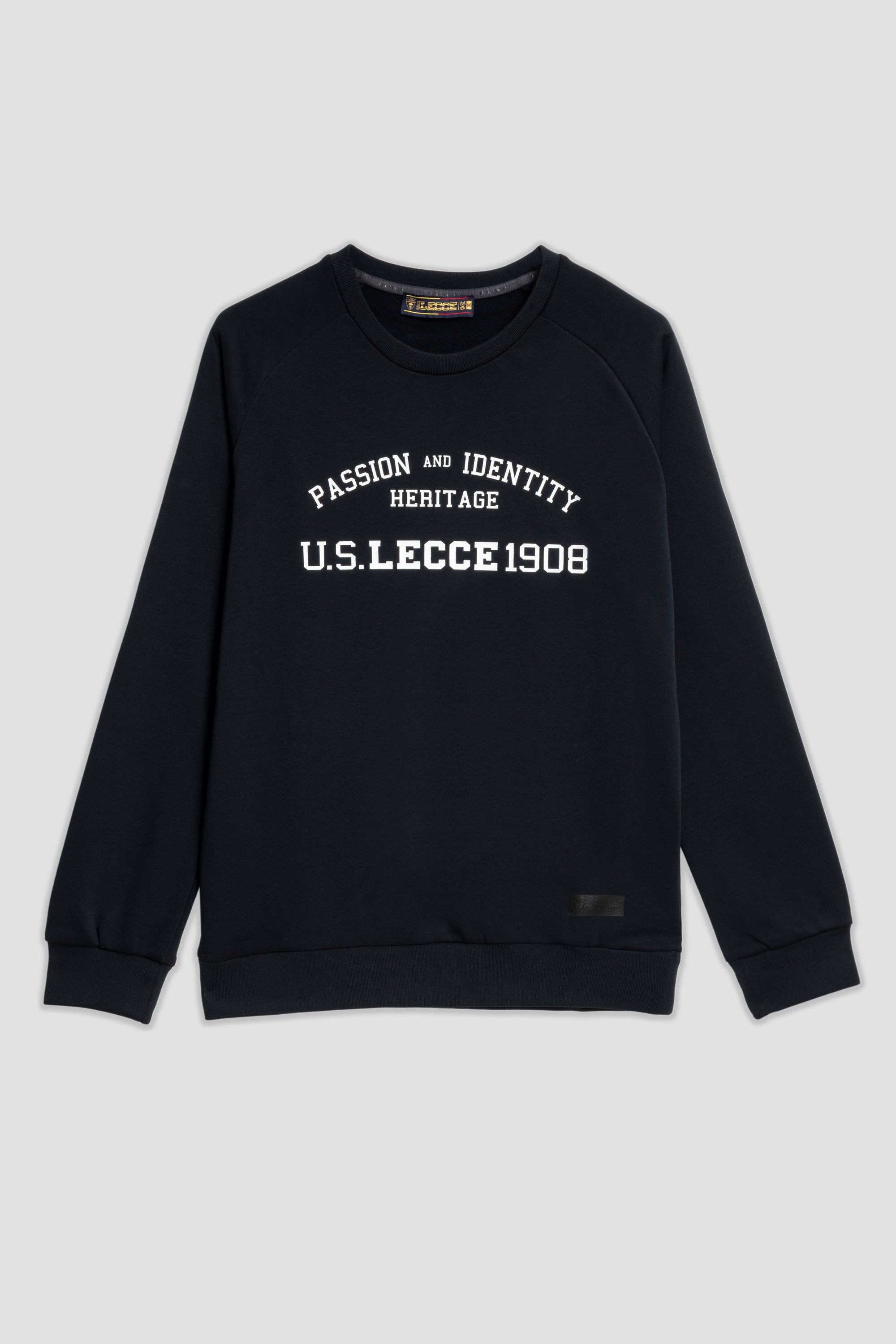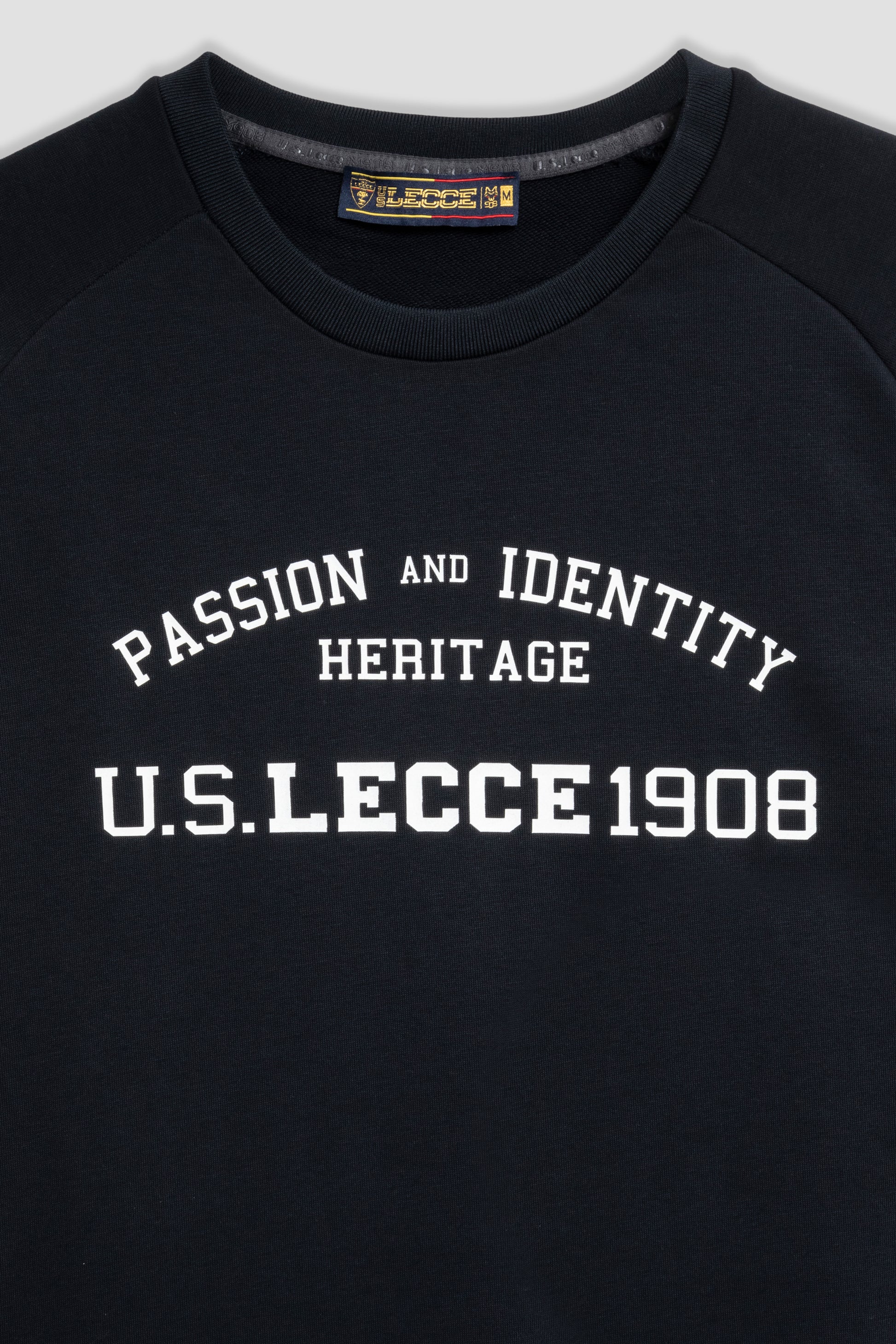 Felpa blu navy con stampa U.S. Lecce Heritage in stile college sul petto e marchio di autenticità tono su tono sul bordo inferiore.