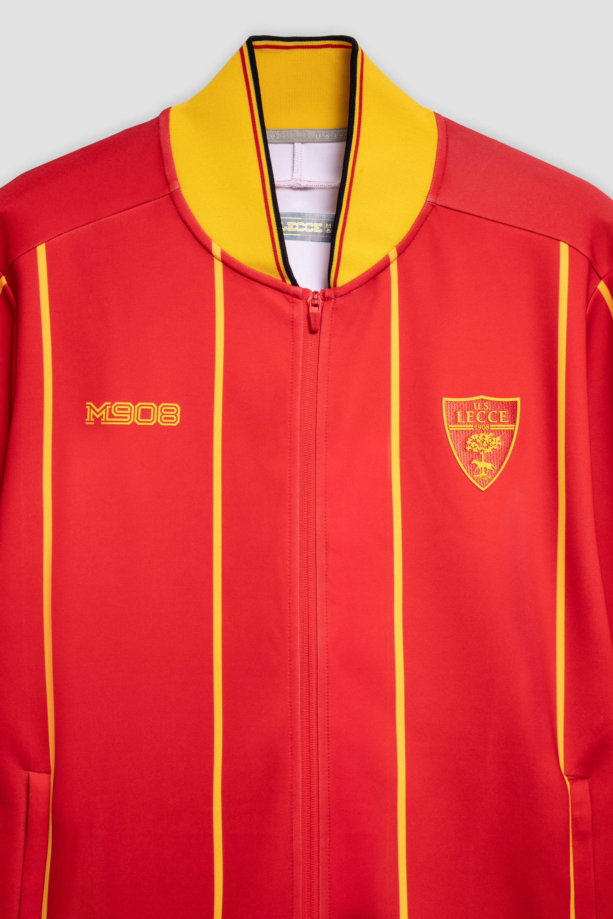 Realizzata in tessuto tecnico confortevole, presenta una pratica chiusura full zip, tasche a filetto e collo alla coreana bicolore. Il look è completato dal logo M908 e dallo stemma U.S. Lecce sul petto.