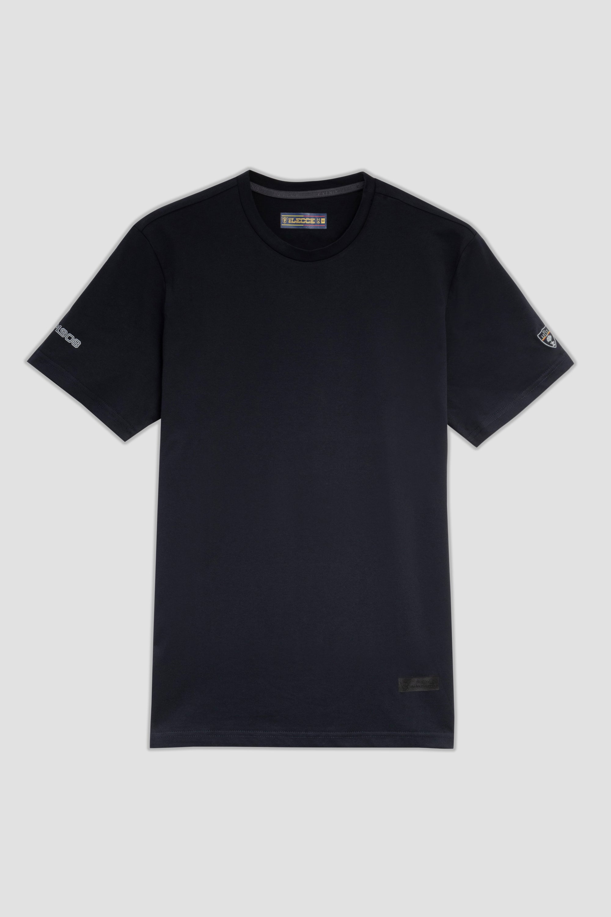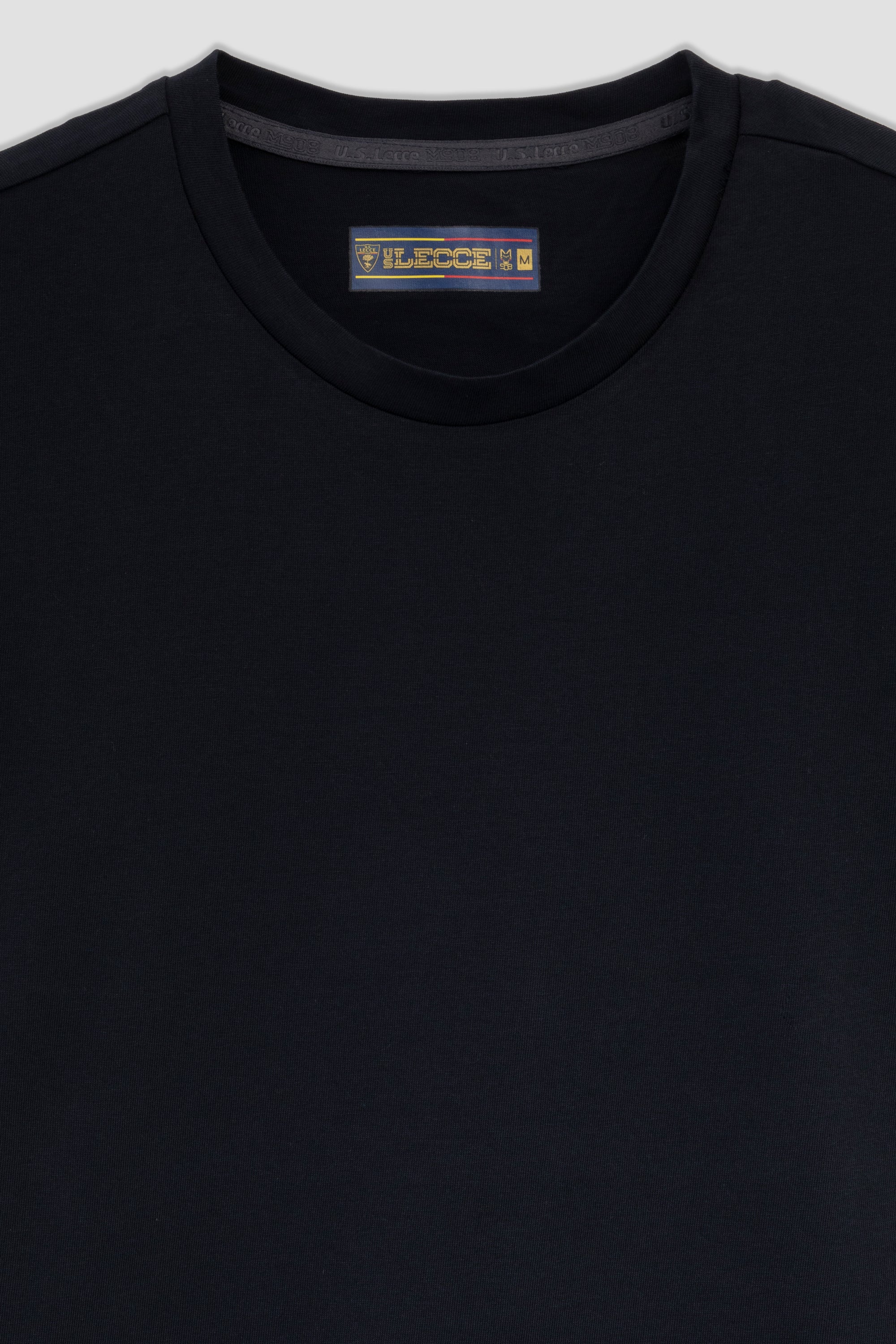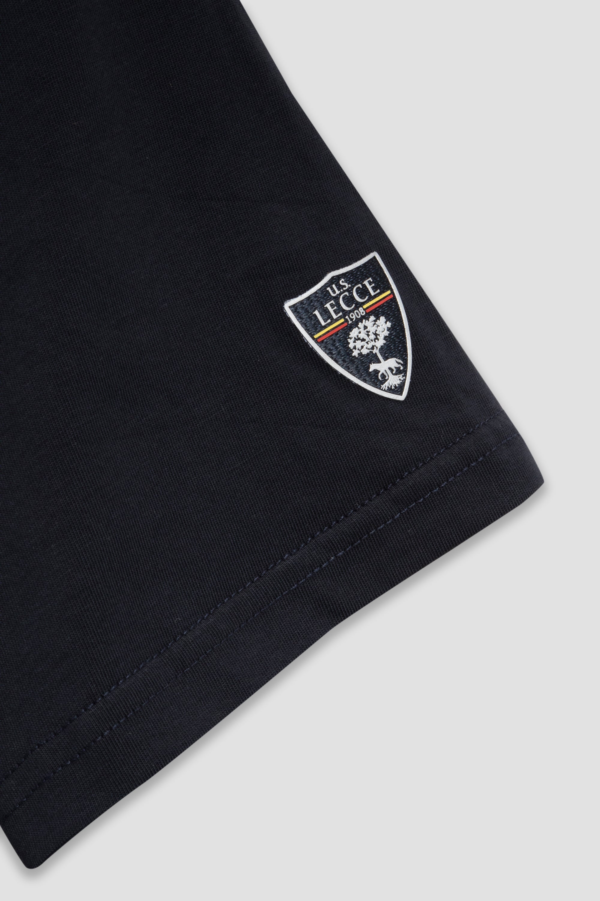T-shirt in cotone blu navy con stemma U.S. Lecce e logo M908 sulle maniche; marchio di autenticità tono su tono sul bordo inferiore.
