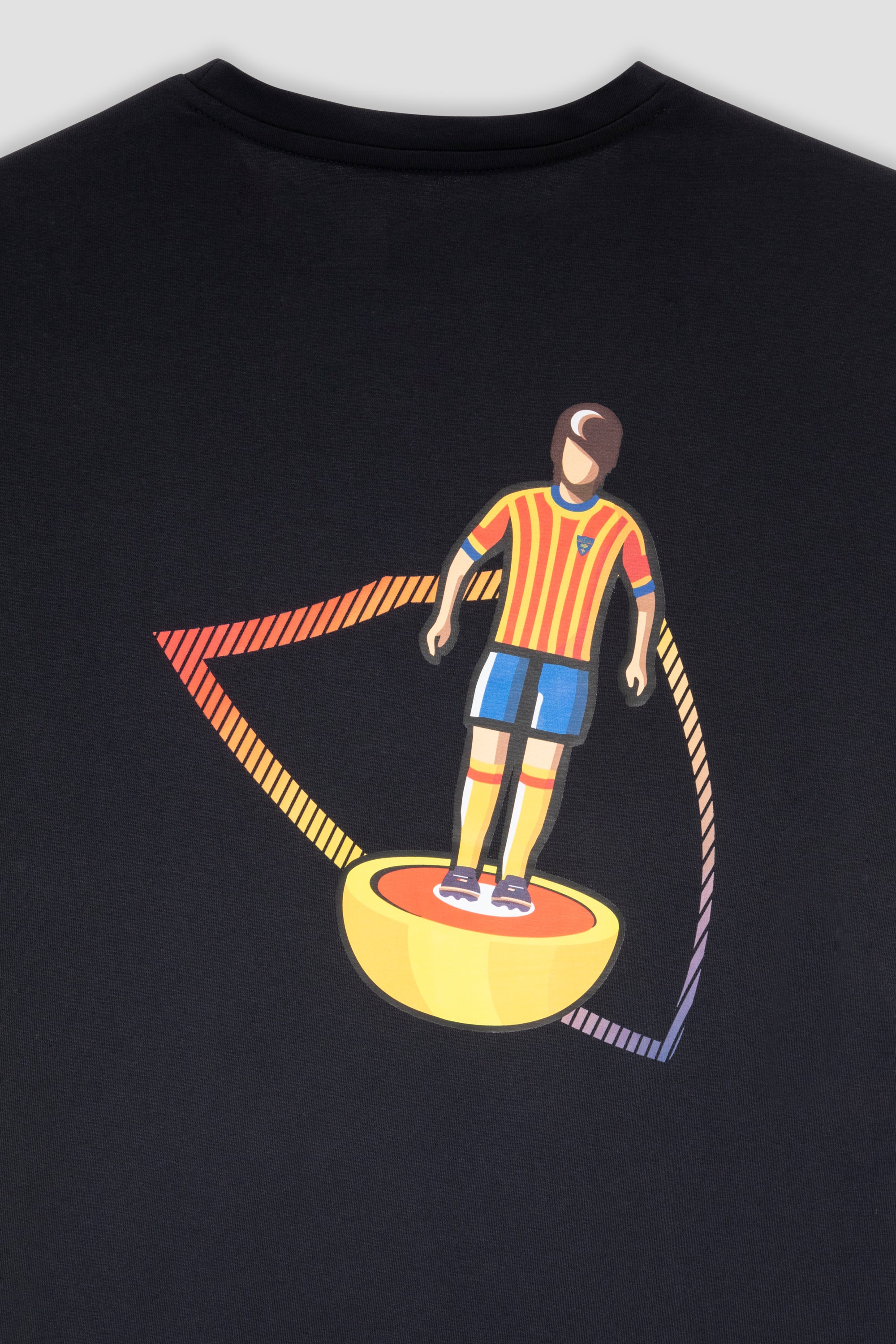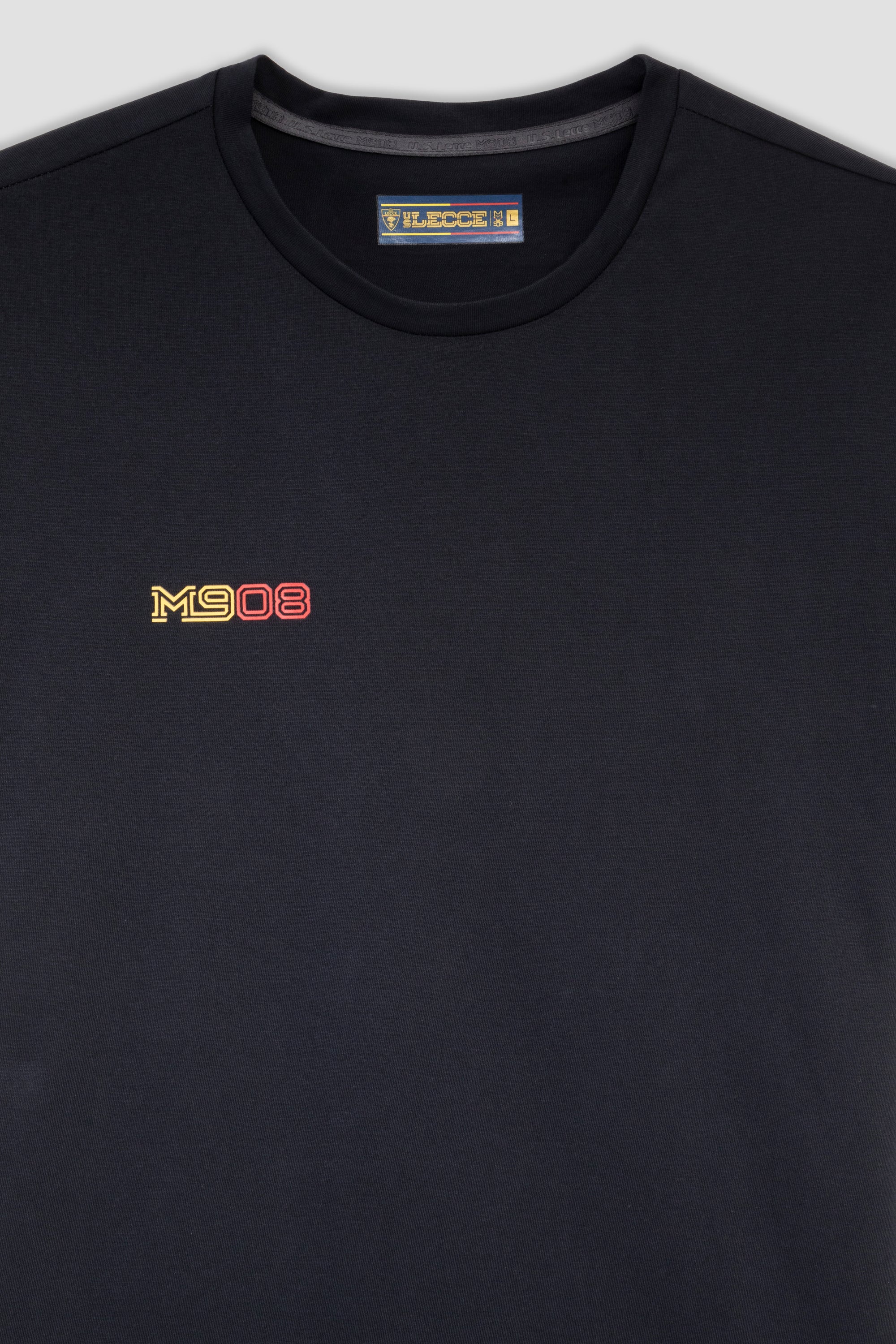 T-shirt in cotone blu navy caratterizzata dall'iconica stampa Subbuteo sul retro, un design che celebra la tradizione e i colori della nostra squadra. Sul petto è presente il logo M908 e sul fondo il marchio di autenticità tono su tono.