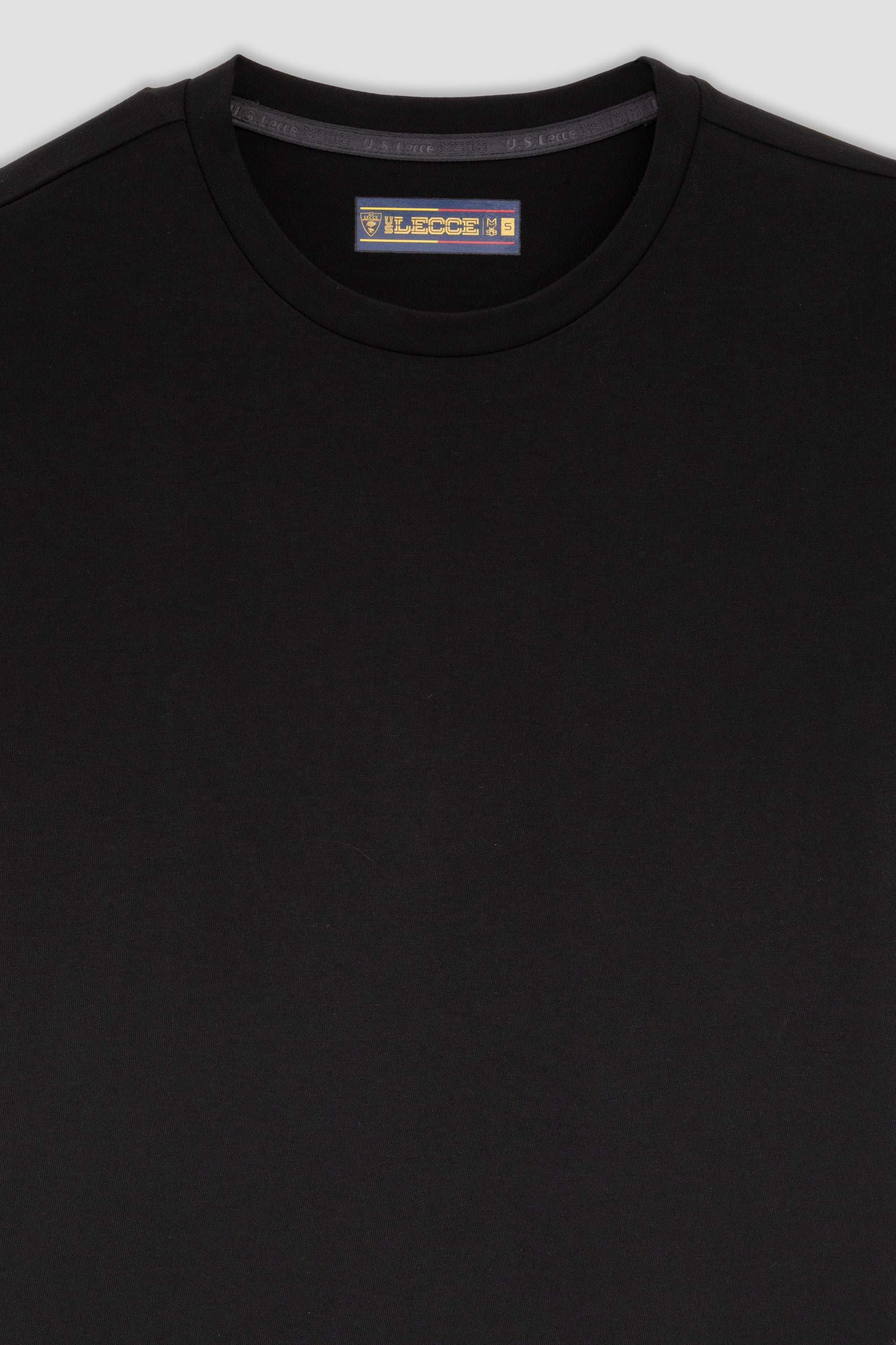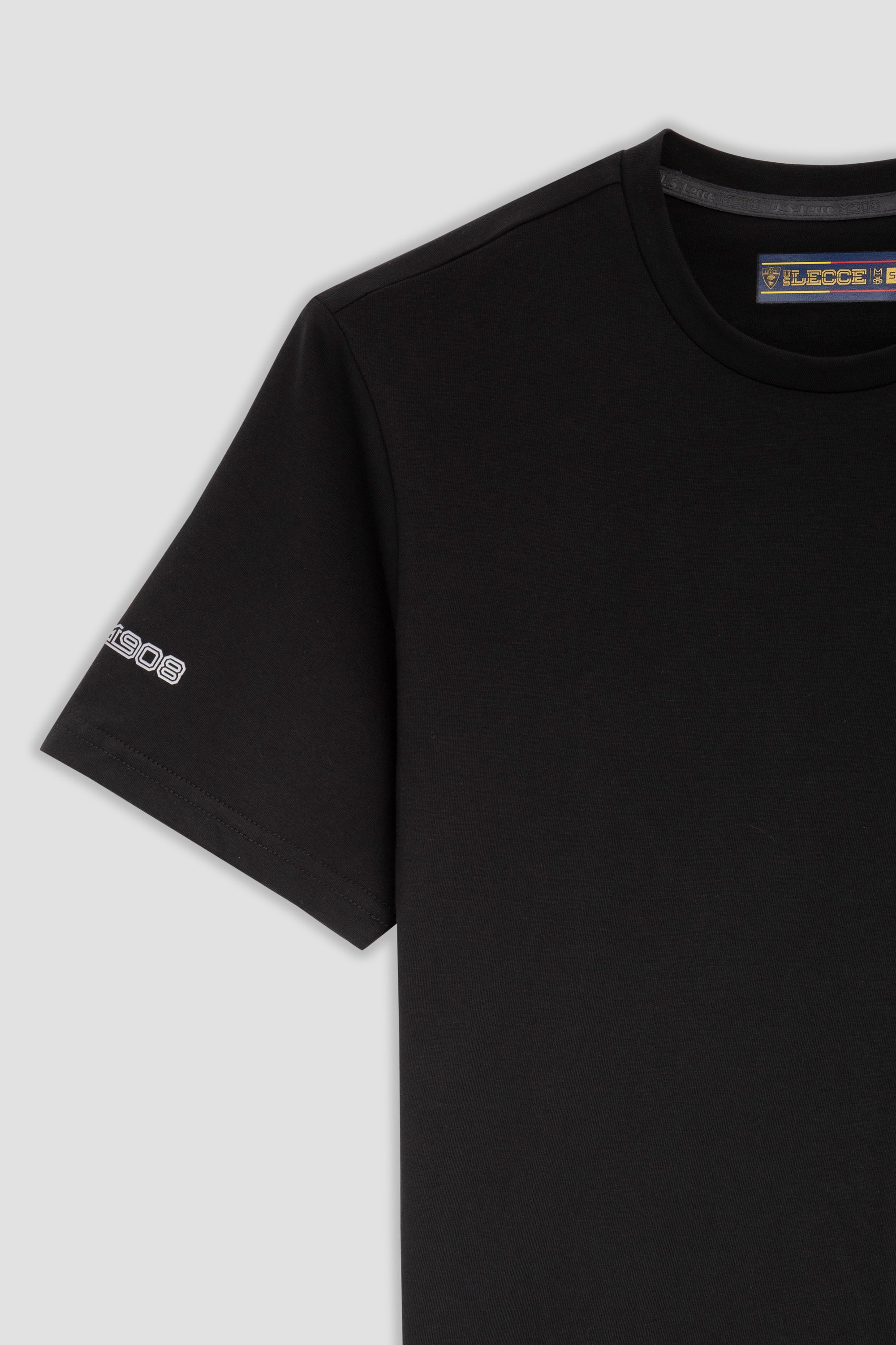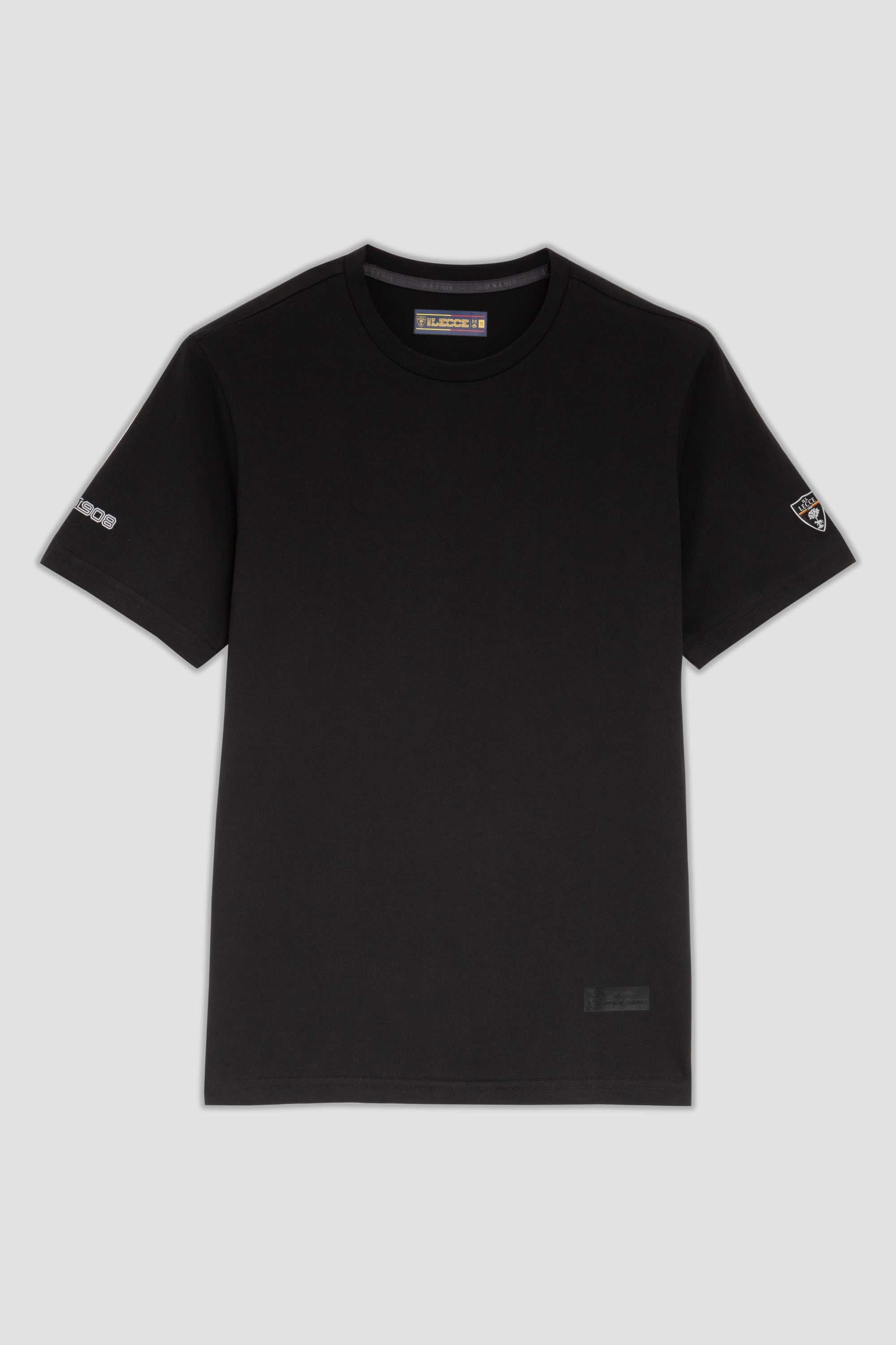 T-shirt in cotone nero con stemma U.S. Lecce e logo M908 sulle maniche; marchio di autenticità tono su tono sul bordo inferiore.